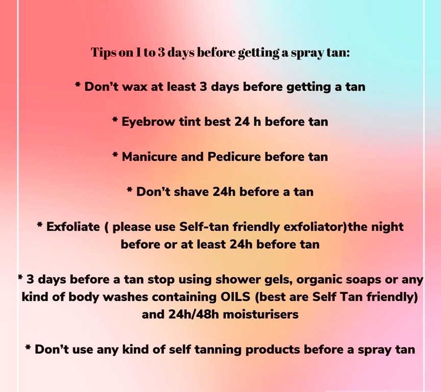 Pro Tip- Chlorine and excessive exposure to water will fade a spray tan faster!