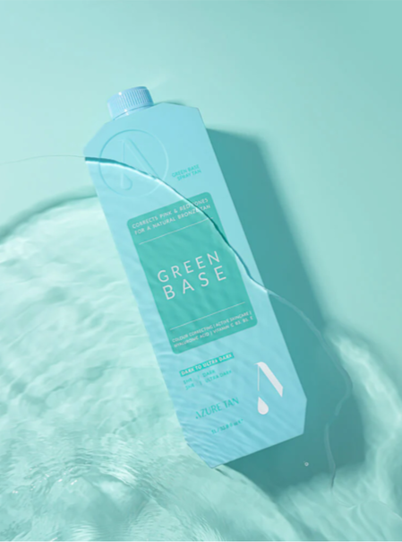 Azure Tan Green Base Spray Tan colour corrects pink & red skin tones to eliminate any orange and give an olive brown skin finish. For medium tan leave up to 1h for darker tan up to 3h.